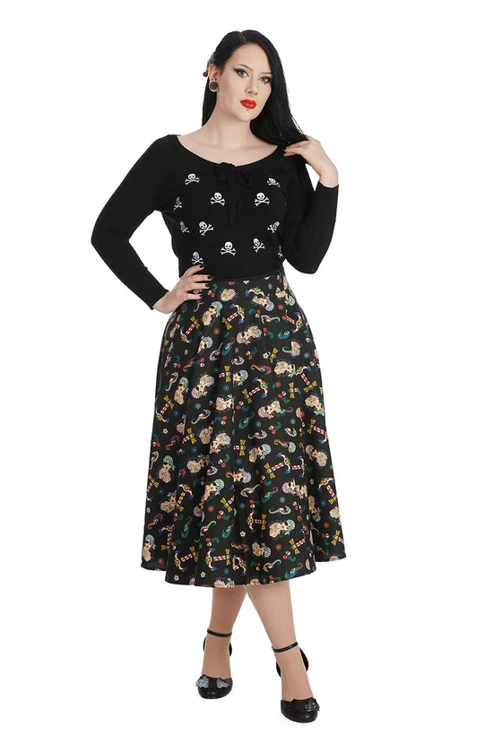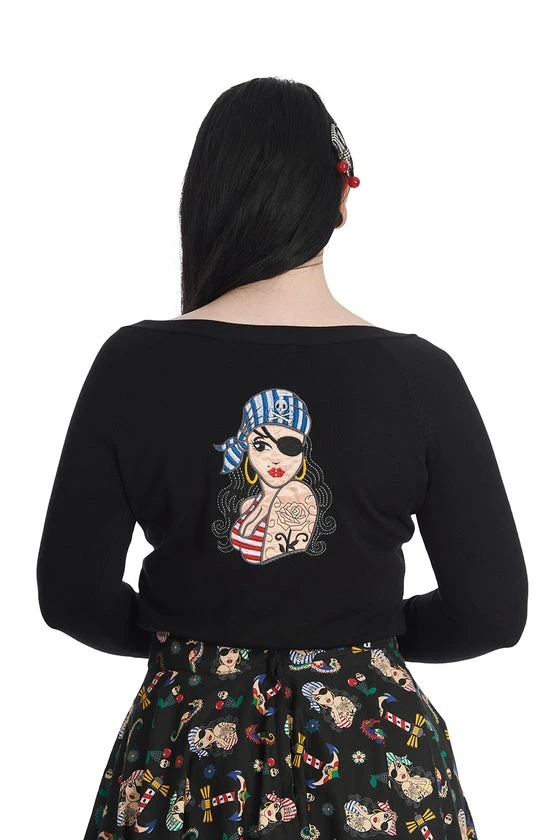 Banned Anchor Pin Up Jumper In Black Pirate Skulls Back Embroidery