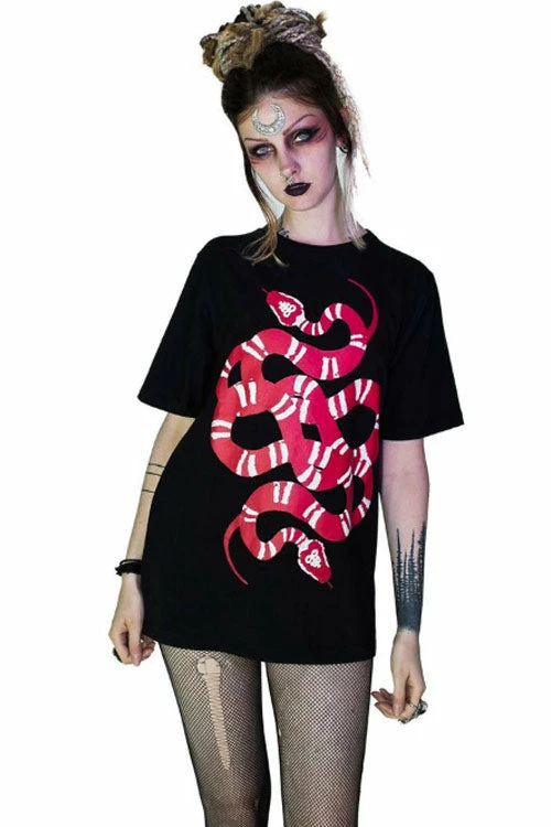 Dr Faust Mens Black T-Shirt In Sutton Red Snake
