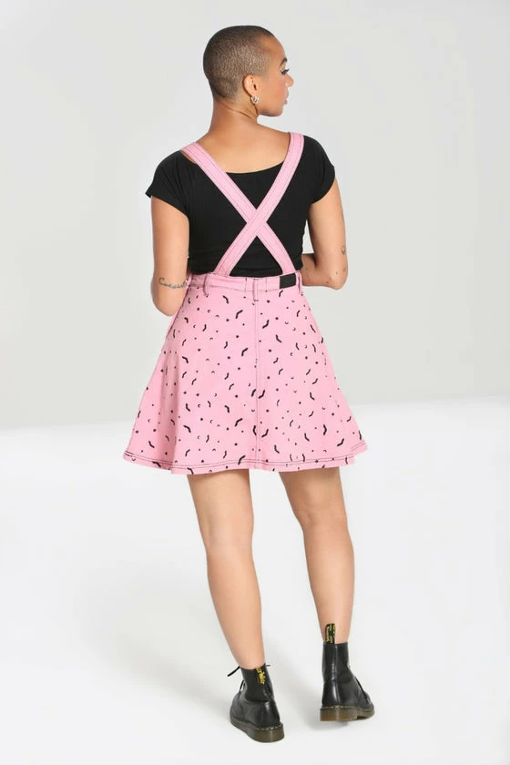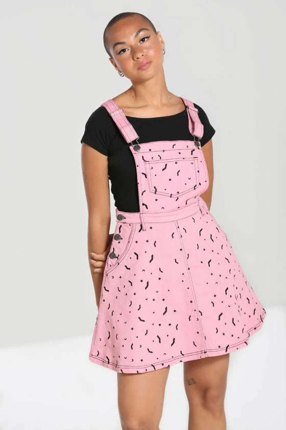 Hell Bunny Bat Pinafore Dress In Pink Embroidered Pattern
