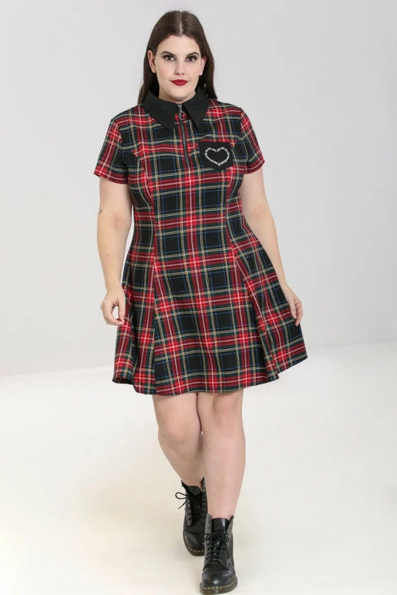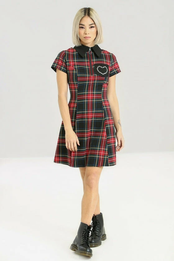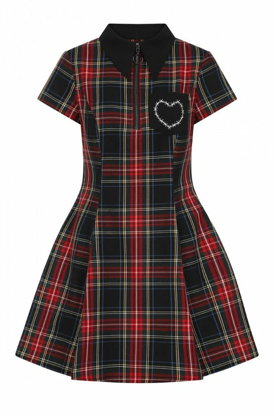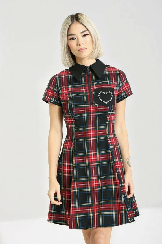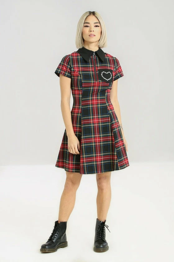 Hell Bunny Heather Mini Dress Tartan With Collar
