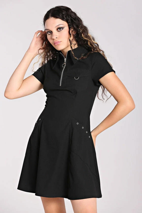 Hell Bunny Tifa Dress Goth Punk Grunge Zips