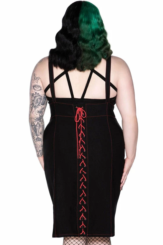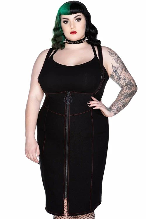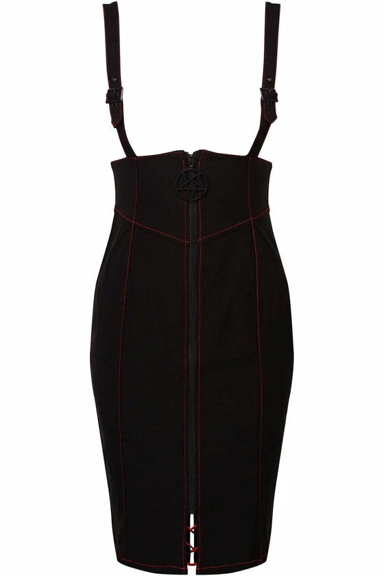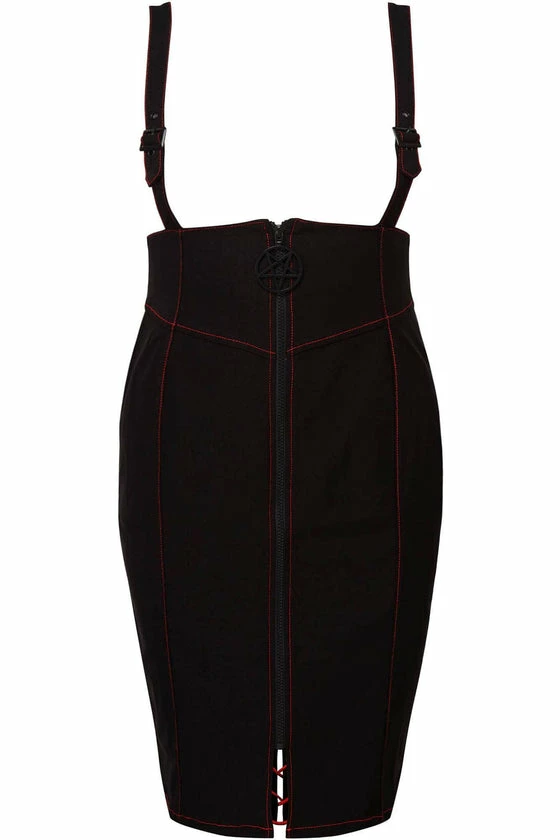 Killstar Adversary Midi Suspender Wiggle Skirt In Black