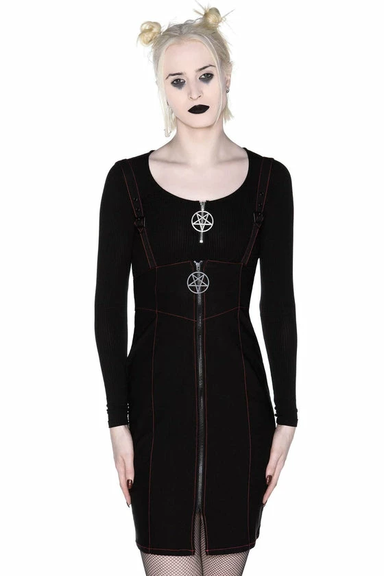 Killstar Magica Dress In Black Velvet With Harness Detailing