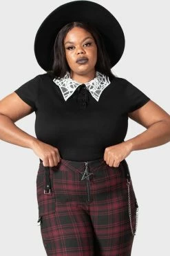 Killstar Trick N’Treat Dress In Black Velvet With Lace Collar
