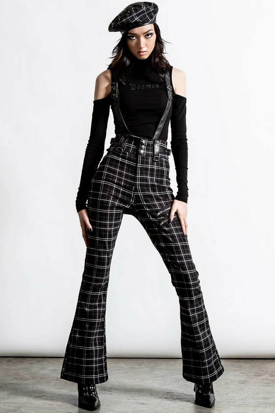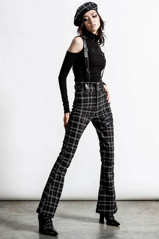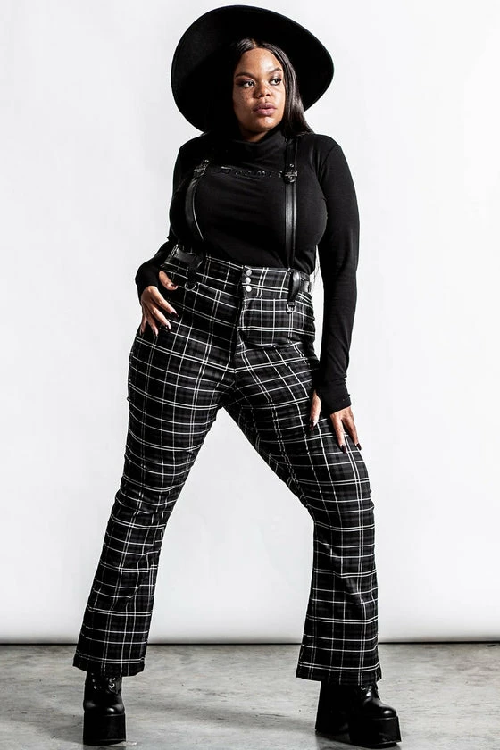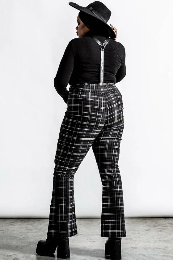 Killstar Prophet Of Doom Flared Suspender Trousers In Ash Tartan