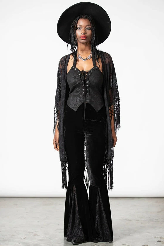 Killstar Just Crew-Sin Velvet Zip Front Long Sleeved Hoodie In Black