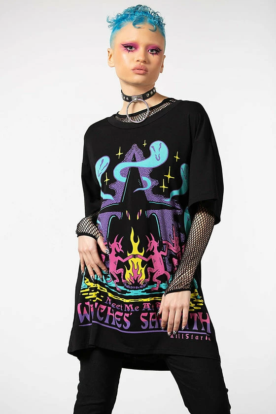 Dance in the dark with our ‘Witches Sabbath’ Relaxed top, crafted in super soft, stretch fabric with a relaxed fit for ultimate comfort. Finished with short sleeves and a large statement graphic on the front, it’s the perfect piece to style up or down.