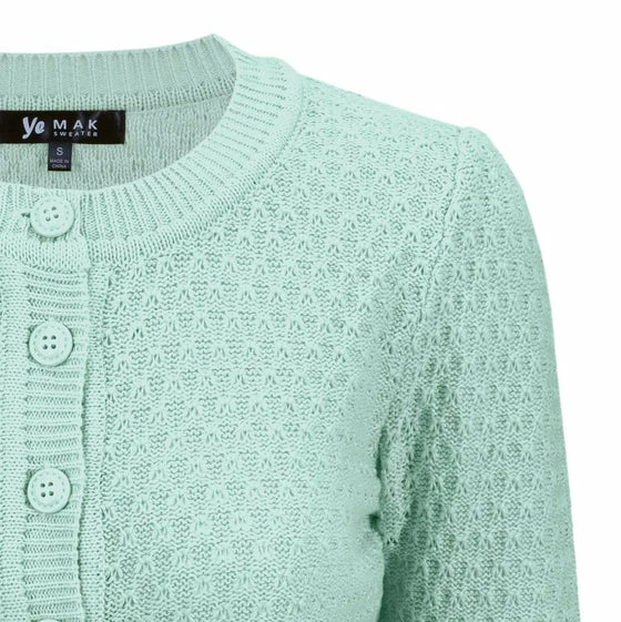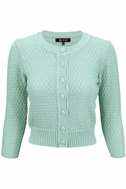 MAK Sweaters Chunky Vintage Knit Cardigan With 3/4 Sleeves In Aqua (Mint)