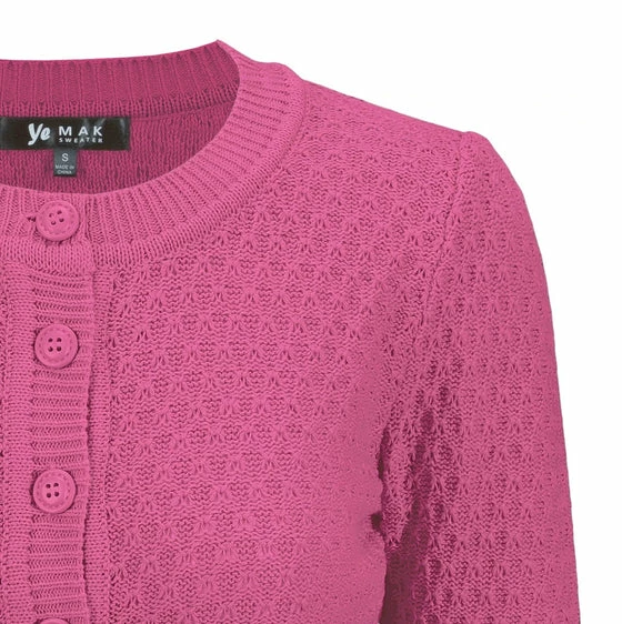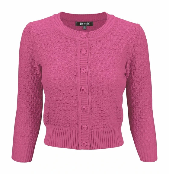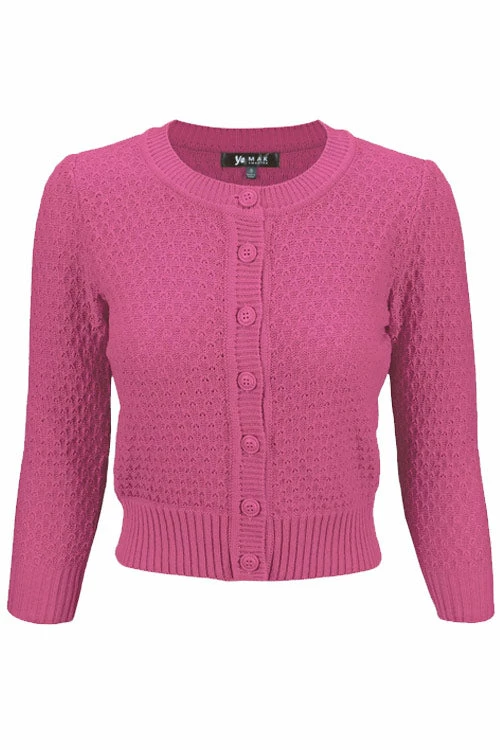 MAK Sweaters Chunky Vintage Knit Cardigan With 3/4 Sleeves In Magenta
