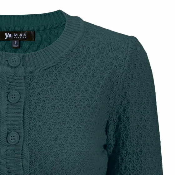 MAK Sweaters Chunky Vintage Knit Cardigan With 3/4 Sleeves In Peacock