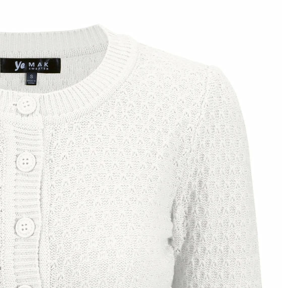 MAK Sweaters Chunky Vintage Knit Cardigan With 3/4 Sleeves In White