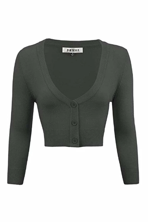 MAK Sweaters Cropped Cardigan With 3/4 Sleeves In Charcoal