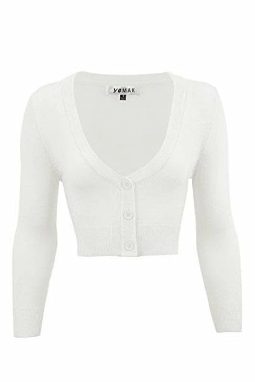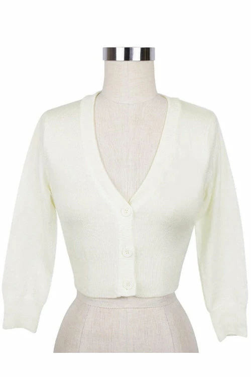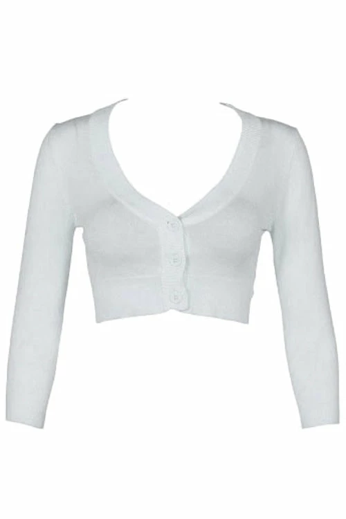 MAK Sweaters Cropped Cardigan With 3/4 Sleeves In White