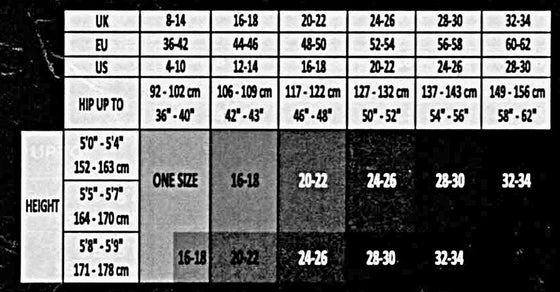 | Size | OS, 16 – 18, 20 – 22, 24 – 26, 28 – 30 |