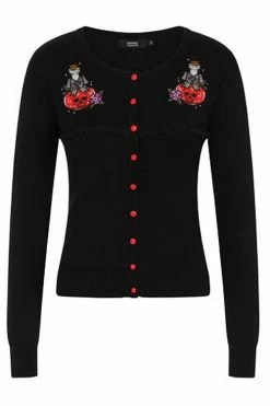 We’ve got bats in the belfry, gals! A frightening separate, this high waisted 1950s style piece is cast in lightweight black cotton and features a sheer border design of bats flitting throughout. The banded high waist is secured with a back zipper and embellished with an embroidered crescent moon while the circle silhouette blows out to knee length!